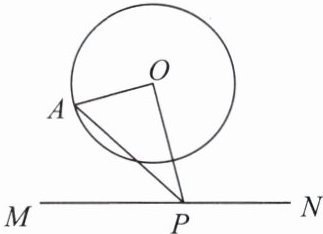 1. 如图,点 $A$ 是半径为 $2$ 的 $\odot O$ 上一动点,点 $O$ 到直线 $MN$ 的距离为 $3$,点 $P$ 是 $MN$ 上一动点. 在点 $P$ 的运动过程中,若 $\angle POA = 90^{\circ}$,则线段 $PA$ 的长的最小值是______.