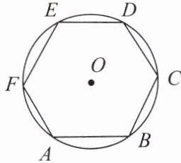 例2 如图,正六边形 $ ABCDEF $ 内接于 $ \odot O $,已知 $ \odot O $ 的周长 $ = 6\pi cm $,求正六边形 $ ABCDEF $ 的周长和面积。