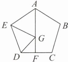 例1 如图,在正五边形 $ ABCDE $ 中,点 $ F $ 是 $ CD $ 的中点,点 $ G $ 在线段 $ AF $ 上运动,连接 $ EG $,$ DG $。当 $ \triangle DEG $ 的周长最小时,$ \angle EGD = ( ) $