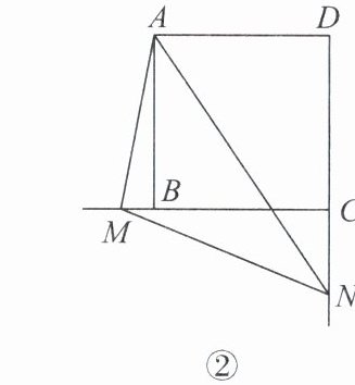 (2)当$\angle MAN绕点A$旋转到如图②的位置时,猜想线段$BM$,$DN和MN$之间又有怎样的数量关系呢?请直接写出你的猜想。(不需要证明)