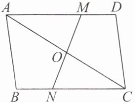 8. 如图,已知△ABC 与△CDA 关于点 O 对称,过点 O 任作一直线分别交 AD,BC 于点 M,N,有下列结论: