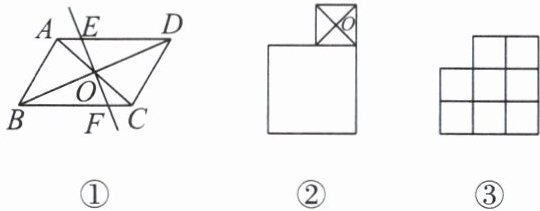 (2) 两个正方形如图②所示摆放,O 为小正方形对角线的交点,求作过点 O 的直线将整个图形分成面积相等的两部分;