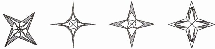 4. 下面的四个图案中,既可用旋转来分析整个图案的形成过程,又可用轴对称来分析整个图案的形成过程的图案有______个.