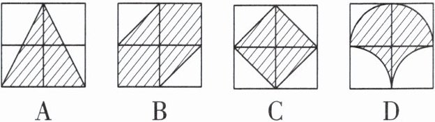 8. 某正方形园地是由边长为1的四个小正方形组成的,现要在园地上建一个花坛(阴影部分),使花坛面积是园地面积的一半,则下列设计不符合要求的是( )