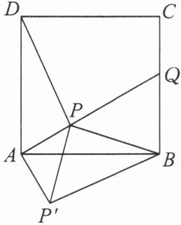 9. 如图,点P是正方形ABCD内一点,连接AP并延长,交BC于点Q,连接DP,PB.将$ \triangle ADP $绕点A顺时针旋转$ 90° 至 \triangle ABP' $,连接$ PP' $.若$ AP = 1 $,$ PB = 2\sqrt{2} $,$ PD = \sqrt{10} $,则正方形的边长为______.