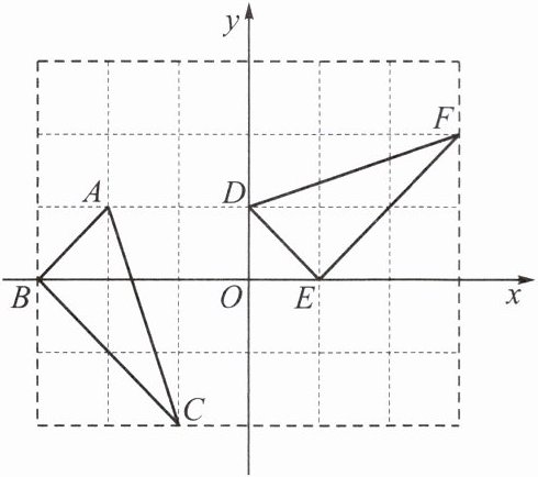 (3)在$ \triangle DEF $的DF边上利用网格线画图找一点Q,连接EQ,使$ S_{\triangle DEQ} = \frac{1}{2}S_{\triangle ABC} $.