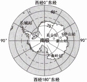 4. 2024年2月7日,中国第五个南极考察站——秦岭站开站,填补了中国在南极罗斯海区域的考察空白。秦岭站也是我国首个面向太平洋扇区的考察站。读极地经纬网图,说出秦岭站的经纬度。