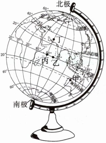 16. 利用经纬网可以确定地球表面任意一点的地理位置,经纬网在军事、航海、航空、气象观测等领域有广泛的用途。读地球仪上的经纬网示意图,完成下列问题。