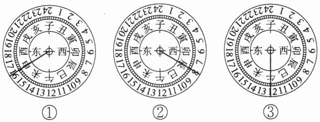 ①一天中太阳位置与晷针影子位置的关系
