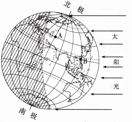 (填“白天”或“黑夜”)。A、B两地时间相差4