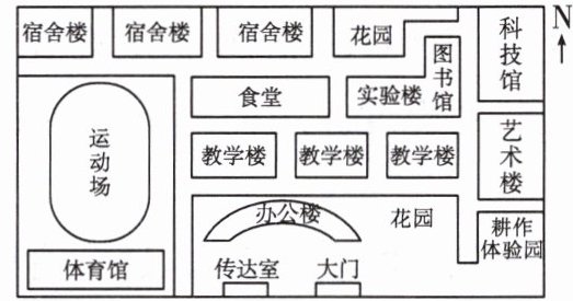 1. 如图示意成都某中学校园平面布局,科技馆位于教学楼的(