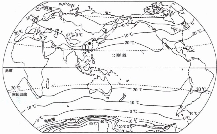 (2)20℃ -10℃ 由低纬向高纬逐渐降低