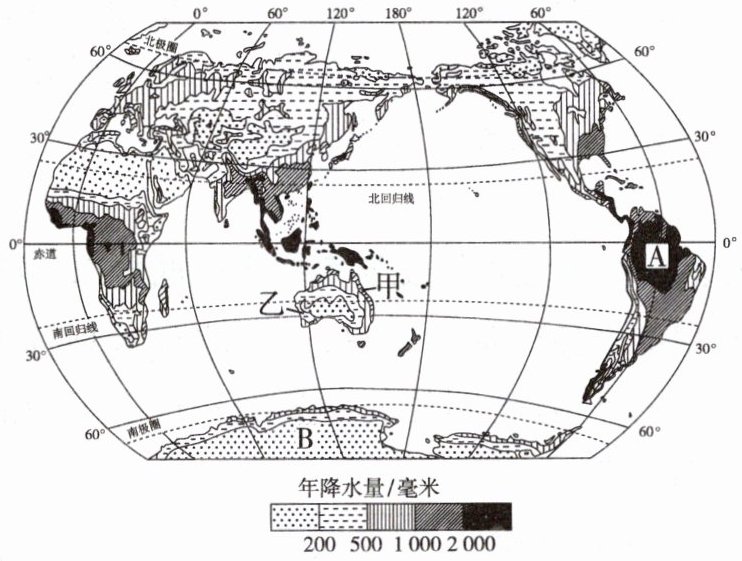 (填“多”或“少”),如甲地的年降水量比乙地多