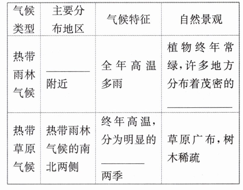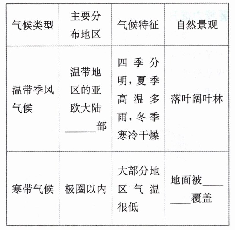 1. 根据各地气候的差异,人们将气候划分为不同的类型,不同的气候类型呈现出不同的自然景观。