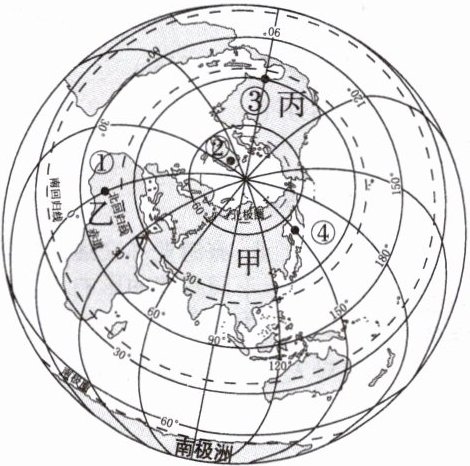 (2)根据海陆轮廓和经纬度位置可以判断大洲,据图判断甲、乙、丙三个大洲依次为(