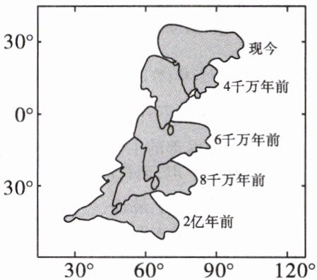 (2)2亿年以来,印度古陆(