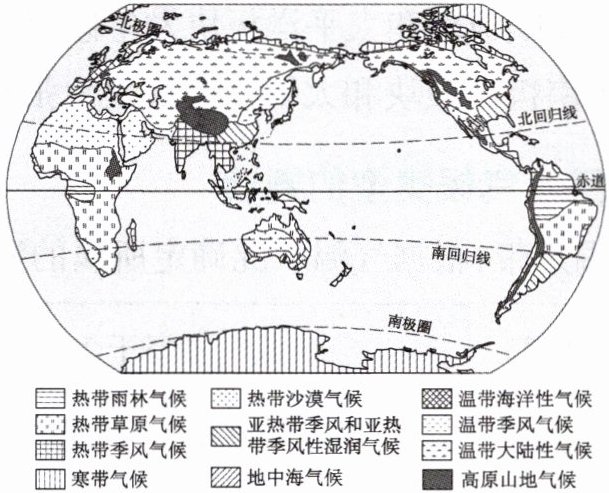(1)同学们发现,热带雨林气候、热带沙漠气候、热带草原气候和