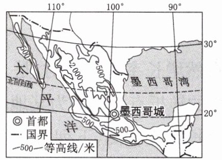 。8. 中低纬度的平原是人类居住的理想场所,而墨西哥的人口却集中分布在海拔2000米以上的墨西哥高原上,结合墨西哥位置示意及等高线图,分析其主要的自然原因:______