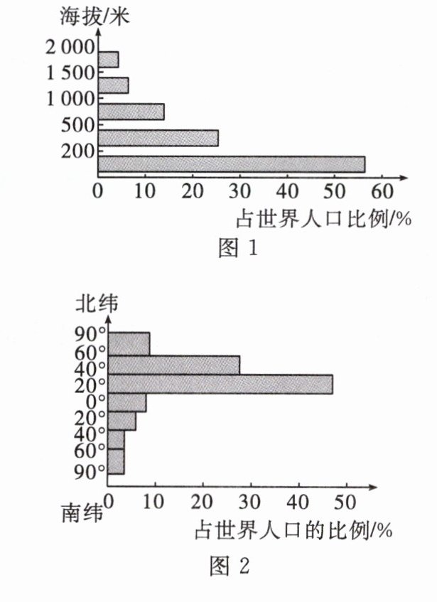 (地形类型)。2. 由图2可知,世界人口集中分布在______