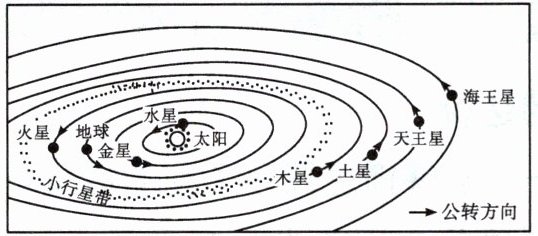 注:太阳系各天体体积及天体之间的距离未按实际比例绘制。