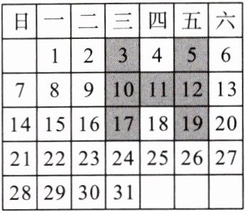 7. 如图,表中给出的是某月的月历,任意用 H 形框选中 7 个数(如阴影部分所示),则这 7 个数的和不可能是( )