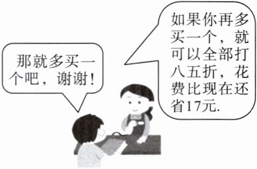 (1)设小明原计划购买文具袋$x$个,则实际购买了$(x+1)$个,由题意得$10(x+1)×85\% =10x-17$,解得$x=17$.故小明原计划购买文具袋17个.