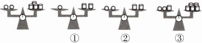 7. 如图,相同形状的物体的质量相等,其中最左边天平是平衡的,则右边三个天平中仍然平衡的是( )