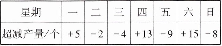 | 超减产量/个 | +5 | -2 | -4 | +13 | -9 | +15 | -8 |