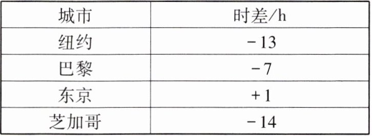 12. 下表列出了国外几个城市与北京的时差(带“$+$”号的表示同一时刻比北京时间早的时数)。如北京时间的上午$10:00$,东京时间是上午$11:00$。