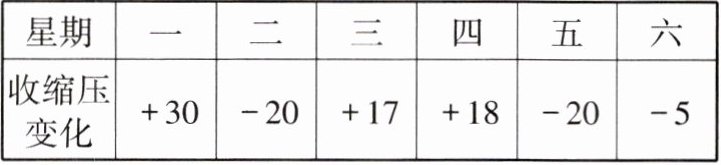 9. 某病人每天下午都要测量一次血压,下表是该病人星期一至星期六收缩压变化情况(单位:mmHg;“$+$”表示收缩压比前一天上升,“$-$”表示收缩压比前一天下降)。该病人上个星期日的收缩压为$160mmHg$,则该病人星期五的收缩压为______mmHg。
