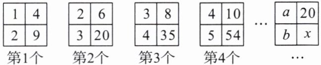8. 如图,下列每个表格中的四个数都是按相同规律填写的。根据此规律,可确定 x 的值为( )