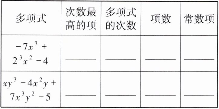 |$x y ^ { 3 } - 4 x ^ { 2 } y + 7 x ^ { 3 } y ^ { 2 } - 5$|||||