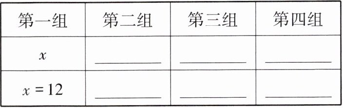 (2) 求 $ x = 12 $ 时第二、三、四组的人数,把答案填写在上表相应的位置;