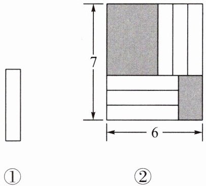 9. 如图,把六张形状、大小完全相同的小长方形卡片(如图①)不重叠地放在一个底面为长方形(长为 7 cm、宽为 6 cm)的盒子底部(如图②),盒子底面未被卡片覆盖的部分用阴影表示,则图②中阴影部分的周长是______.