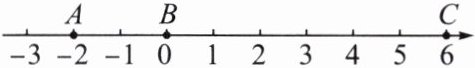 12. 如图,在数轴上点$A$,$B$,$C表示的数分别为-2$,$0$,$6$。点$A与点B之间的距离表示为AB$,点$B与点C之间的距离表示为BC$,点$A与点C之间的距离表示为AC$。