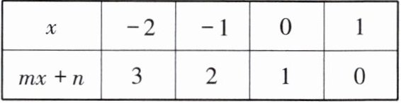 10. 已知关于 $ x $ 的代数式 $ mx + n $,当 $ x $ 分别取 $ -2 $,$ -1 $,0,1 时,对应的代数式的值如下表:
