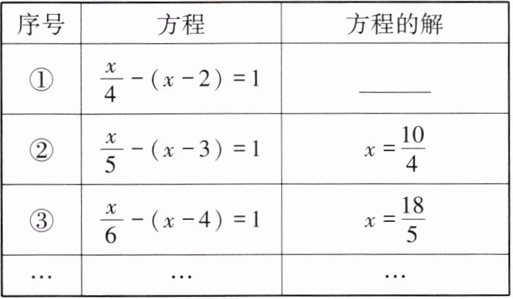 |①|$\frac{x}{4} - (x - 2) = 1$|______|