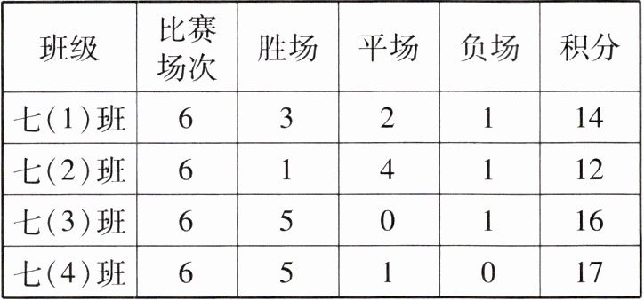 8. 学校举行排球赛,七年级积分榜部分情况如下表.