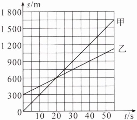 规律总结 由题知,两辆汽车均做匀速直线运动,两辆车同时、同向、异地出发,出发时相距 $300m$;由图得出甲车在某一时间内的路程,利用速度公式求甲车的速度;由图得出甲车追上乙车的时间($20s$);由再行驶 $30s$两车行驶的路程,求出两车的距离。