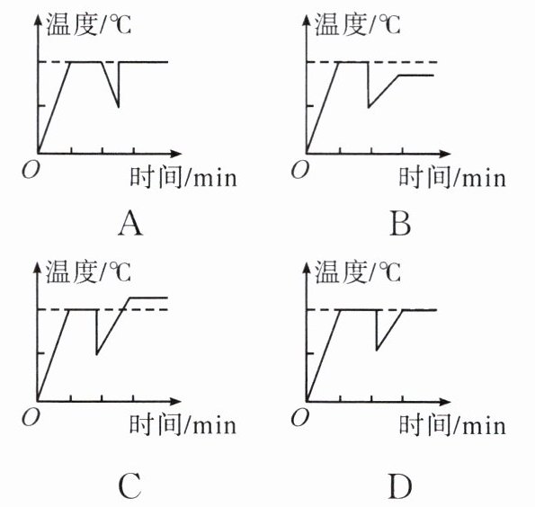 (4)星期天小明在家烧水煮饺子,当水烧开准备下饺子时,妈妈提醒他锅里的水有点少,于是小明又往锅里迅速加了一大碗水(水量比锅里的少),用同样大的火直至将水再次烧开。下面能说明整个烧水过程中温度随时间变化的图像是______(选填字母)。