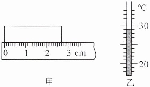 $ cm $;图乙中温度计读数为29