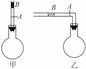 。(4)如果将该直管折成直角弯管,如图乙,其他条件保持不变,那么 $ B $ 处标记的温度值将