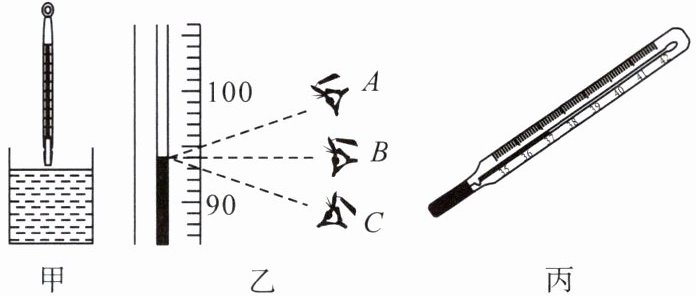 B.乙图中温度计读数时,视线沿 $ A $ 的方向俯视,会导致读数偏大