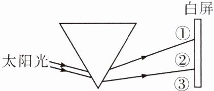 如图所示,一束太阳光投射到玻璃三棱镜上,在棱镜右侧白屏上可以观察到不同颜色的光,三棱镜与白屏之间的两条光线是能看到的光的边沿,在屏上标出了三个太阳光区域①②③。下列说法错误的是(