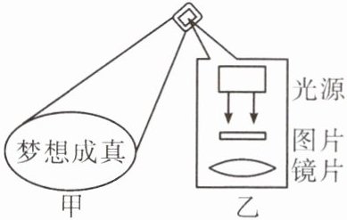 (2024·江苏苏州)如图甲所示是公共场所的宣传投影灯,装在高处的投影灯照在地面上出现图案,其内部结构如图乙所示。下列说法正确的是(