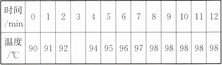 |水的温度/℃|90|92|94| |98|98|98|