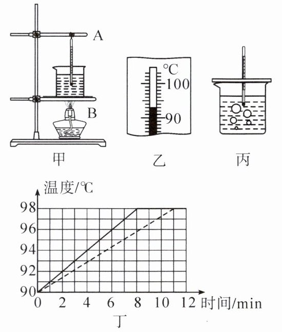 的位置固定铁棒 A 的位置。(2)当水温上升到 90℃后,每隔 1 min 记录一次温度计的示数并记入表格,直到水沸腾并持续一段时间为止。若第 3 min 时温度计的示数如图乙所示,其读数是