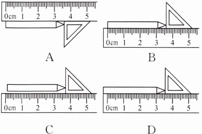 5.如图所示,用刻度尺测量铅笔的长度,测量方法正确的是(