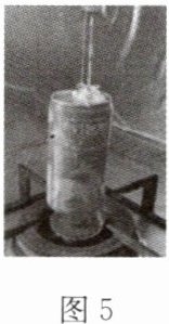 我们可以看到易拉罐在转动,气从两个小孔喷出,如图 5 所示。