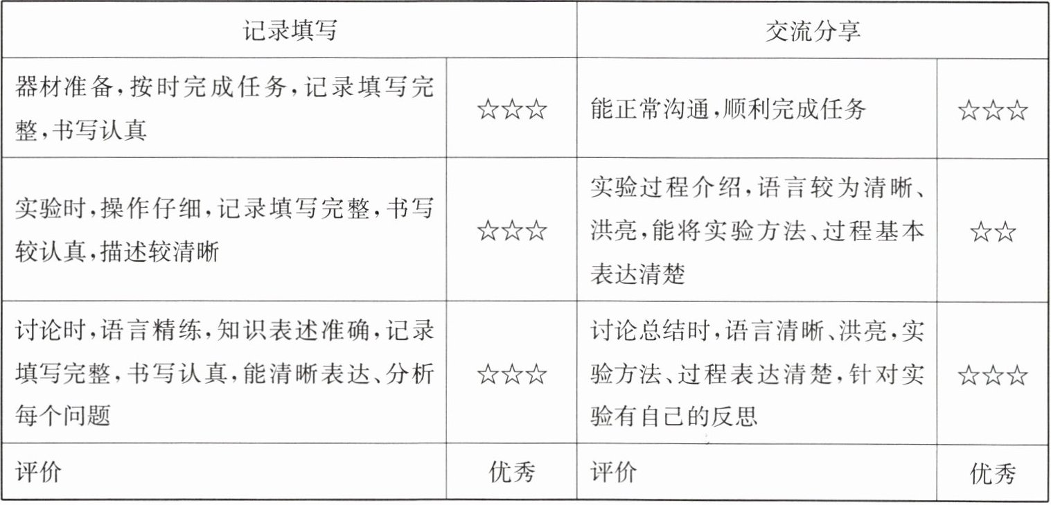 |器材准备,按时完成任务,记录填写完整,书写认真|能正常沟通,顺利完成任务|